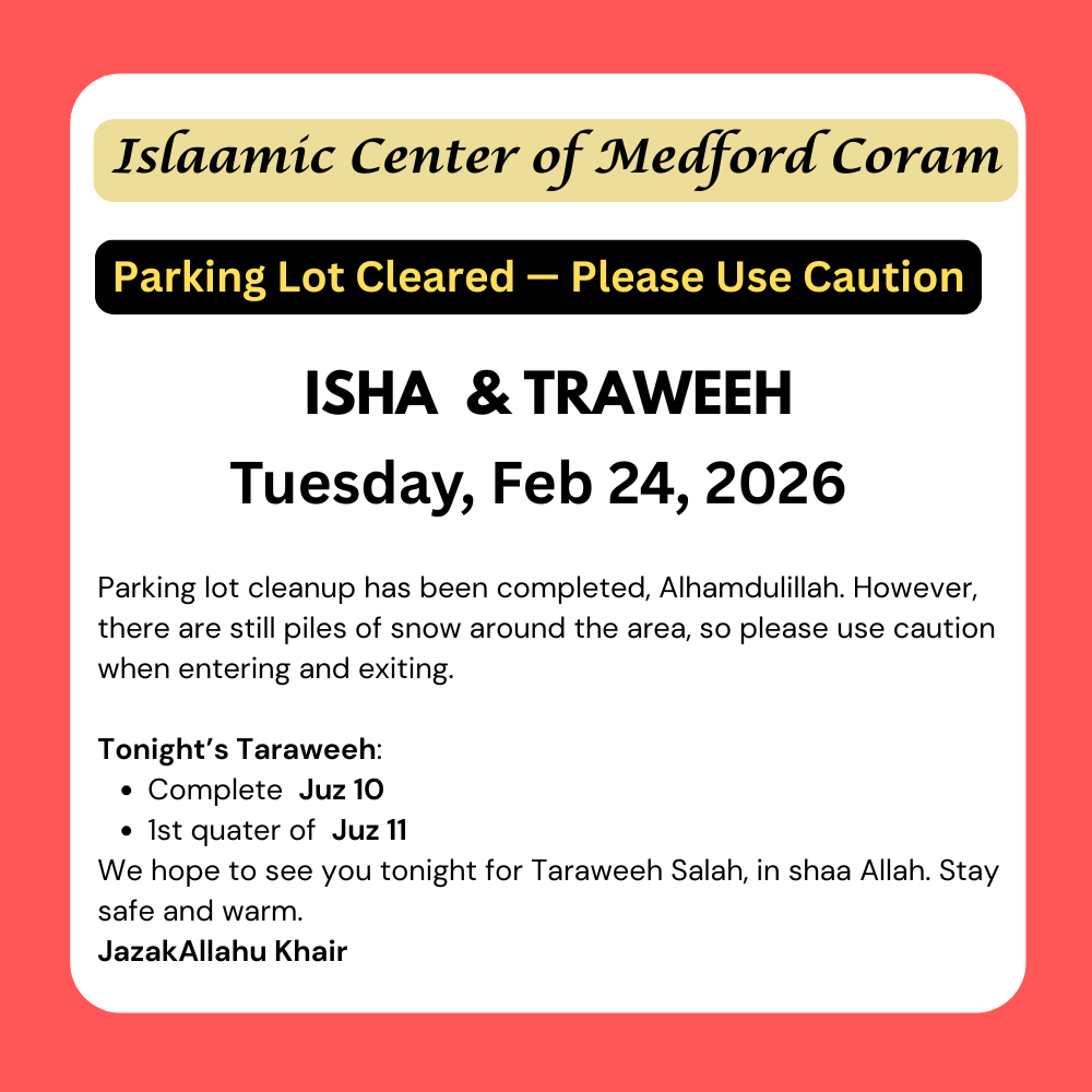 The Masjid facility is now ready for use, and we are pleased to share that the sidewalk has been completed and parking lot work is currently in progress. We are also in the process of obtaining the final building inspection so that, In’sha’Allah, the Masjid can be officially opened before the blessed month of Ramadan.